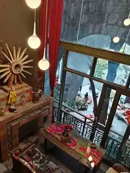 Stepping inside, you are immediately enveloped by an artistic vibe. The space well preserves the original living environment of Teacher Yang Liping. On the walls hang paintings by modern artist Ye Yongqing, whose colors and lines weave a fantastical world; props from Yang Liping’s dance drama "Pingtan Impressions" are quietly displayed, telling stories of the stage’s brilliance. Each room features Bai-style fireplaces and furniture made from reclaimed boat wood, showcasing ethnic charm and environmental consciousness, immersing visitors in a wonderful fusion of art and life.