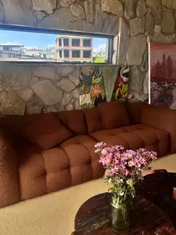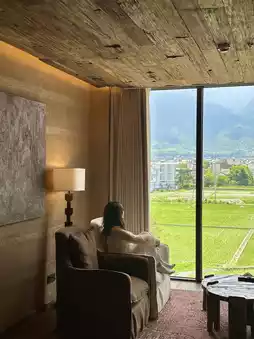 Panoramic floor-to-ceiling windows facing Cangshan and the fields