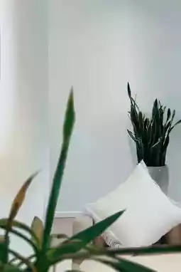 Cream-colored decor dominates with creamy white🧁as the main hue, complemented by earthy tones. The minimalist and clean design creates a strong sense of spaciousness, enhanced by green plants🍃that add a refreshing and bright touch to the room✨