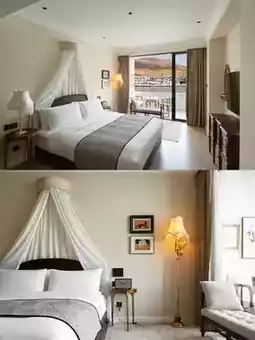 The rooms are named after artists, which really hits me! I chose the Picasso room; opening the balcony door reveals a 270° unobstructed sea view. In the morning, sunlight filters through the sheer curtains, casting light spots on the floor.