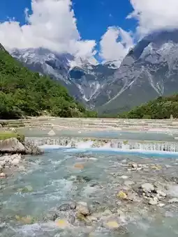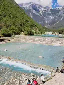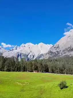 Starting at 6 AM from the hotel, head to Yunshanping, located within the Jade Dragon Snow Mountain scenic area. Yunshanping is a lush alpine meadow nestled halfway up the main peak of Jade Dragon Snow Mountain, hidden within dense spruce forests. On a clear day, you can catch a glimpse of the mountain’s main peak. Jade Dragon Snow Mountain, with an elevation of 5,596 meters, is often shrouded in mist and clouds, resembling a giant silver dragon from afar, hence its name. It’s said that not every visit guarantees a view of the snow-capped peak. By the time you leave, the area may already be enveloped in thick white fog. Next, visit Blue Moon Valley at the foot of the mountain, a dreamlike paradise where the crystal-clear blue waters of the lake offer a refreshing coolness.