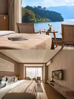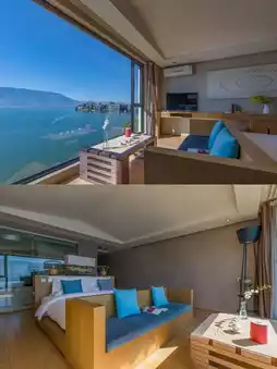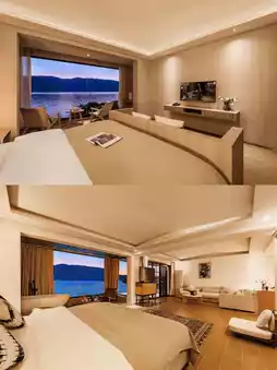 Floor-to-ceiling windows "framed" the entire Erhai Lake into the room, with Cangshan Mountain shrouded in mist in the distance and Nanzhao Folk Island floating like an emerald on the water.