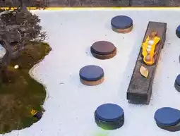 1️⃣ Courtyard water feature terrace: the morning light and shadows are stunning