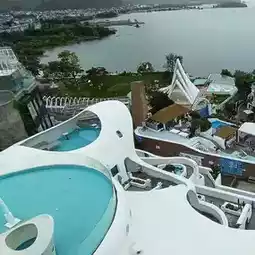 This tourist attraction features numerous hotels, shops, restaurants, and cafes located on the shores of Erhai Lake in Dali, Yunnan Province. This privately-owned project was inspired by the island of Santorini in Greece.