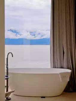 ✔️The room features 180° floor-to-ceiling windows overlooking the blue Erhai Lake, and you can watch the sunset while lying in the bathtub~