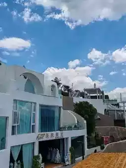 Stepping into Ideal State feels like an instant transport to distant Greece. Pristine white houses cascade down the hillside, each uniquely designed. The Dali Santorini Boji Scenic Hotel is a perfect example, featuring iconic white spiral staircases, arched doorways, and rooftop terraces that complement the blue skies and clouds, forming a pure and beautiful picture. Here, you can wander along meandering paths, surrounded by blooming bougainvillea and striking cacti, while feeling the warmth of sunlight glowing on the white walls.