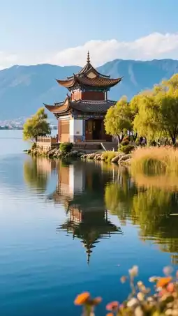 ✅ First stop: Longkan Pier & Erhai S-curve, best from 6:30 to 8:00 AM, stunning light and shadow, fewer tourists, perfect for shooting “water reflections + redwood boardwalk + S-curve” clips. Hanfu rental available for photos (about 30-50 RMB/hour).