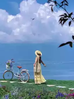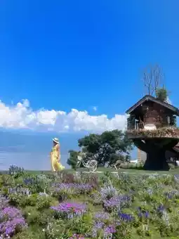 ✨Blue sky⛅️white clouds☁️flowers🌷treehouse🏡bicycles🚴