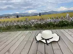 After checking in at the Corner Tower, head straight for the yellow wall! The golden rice fields in October are super photogenic.