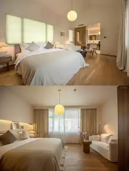Environment: Designed by a professional + a hefty design fee is really visible! The first floor is a sunroom living room (floor-to-ceiling windows + Marshall speakers + antique furniture) ✨, cozy sofa for coffee and breakfast is so healing; floors 2-3 have 6 rooms in total, the suite we booked has a small balcony, well water for washing + silk quilt + warm ambient lighting, perfect for private photo shoots 📸! The room fragrance is also very tasteful, greeted by a gentle scent upon entering, full of attention to detail.