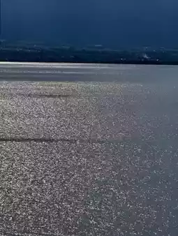 the entire lake surface is adorned with diamond-like golden sparkles.