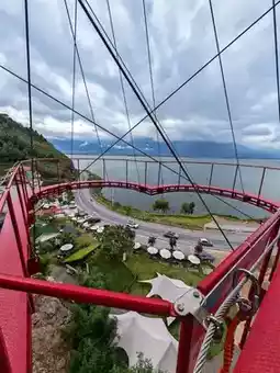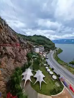 The spacing between the rock holds is very reasonable, no need to force yourself. Following the instructor’s advice to keep your center of gravity close to the rock face, walking slowly was actually very stable. There are several viewing platforms along the way; when stopping to take photos, the wind blows past your ears, and you can see the entire coastline of Haidong, giving a more "God’s eye view" than just taking pictures by Erhai Lake! It took about 40 minutes to finish Route A, just when I was getting hooked, I turned and saw the zipline — sliding directly from the mountainside toward Erhai Lake, about 100 meters long. The moment I shouted "ah" before starting, all my stress was blown away by the wind!