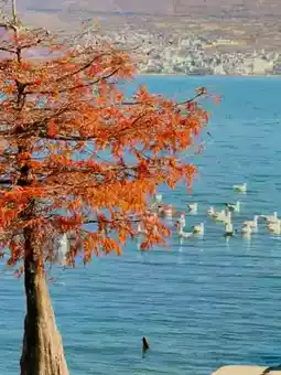 Head to the shore of Cibi Lake to see trees donning colorful autumn attire, wild birds resting in the wetlands, and feel the evening breeze over the lake, fully enjoying the tranquility of the “Plateau Water Town.”