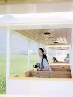 A glass café built in the middle of the rice fields. Order a cup of coffee and sit by the window watching the endless rice fields. The rolling waves of rice are very soothing.