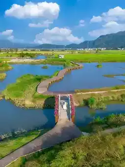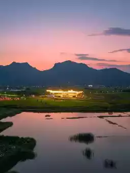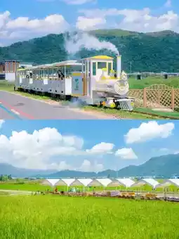 Take a ride on the rice field mini train, weaving through the yellow and green fields, feeling the early autumn breeze. In the evening, you can chase a romantic rice field sunset, with golden sunlight flooding the entire field—breathtakingly beautiful!