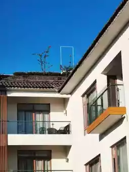 Looking up, the white walls and gray-tiled sloping roofs are vividly alive against the blue sky with green plants and red flowers🌳. The collision of glass balconies and wooden structures gives the buildings both the rustic charm of Dali residences and the refined feel of modern vacation homes. Sunlight cuts geometric patterns of light and shadow on the walls, turning even a corner window or balcony into a playground of light, with every line full of the designer’s ingenuity.