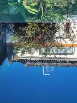 The courtyard at noon is like a picture frame kissed by clouds and mist. A stone bridge spans over the clear water, with mist rising gently, blurring the red lanterns, wooden corridor pillars, and lush plants into a poetic haze🎐. The pool water is like a mirror, blending the reflections of buildings and flowers into a dreamlike scene, as if a fairy might step out of the mist at any moment. The carefully arranged potted plants and freely growing ferns shimmer with vitality in the interplay of sunlight and mist, making every shot feel like a scene from a fairyland.