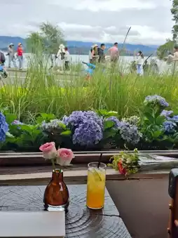 Wake up to views of the rippling lake and lush trees. Today’s agenda: brunch at a café with cozy vibes (try Lakeview Brunch, 101 Riverside Ave, open 8am–3pm), followed by an afternoon flower-picking activity nearby. Don’t forget your rain jacket – showers make the scenery even dreamier! End your adventures with cocktails and local eats by the water. 🍹🌦️