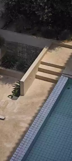 In the afternoon, take light and shadow photos by the pool. The white walls serve as the perfect backdrop, and sunlight filtering through the leaves creates a natural soft-focus effect—no filters needed!