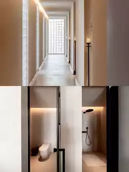 The wind passes through the courtyard, lingering between white walls and blue tiles