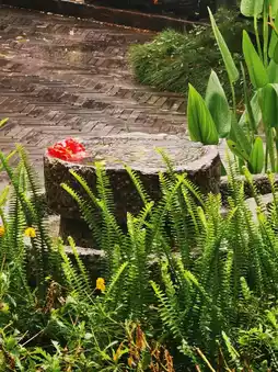 Stepping into the courtyard feels like entering a cross-cultural aesthetic scene blending Chinese gardens with Dali’s local charm: in the ancient stone mill water feature, a red flower gently sways with the raindrops, and the ferns are lush and vibrant, filling the rainy day with freshness🌿 The bonsai by the pond is robust and rustic, its roots intertwined with succulent plants, harmonizing with Japanese stone lanterns and misty water vapor, creating a “landscape painting in the rain” vibe with every snapshot.