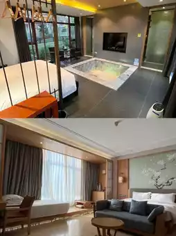 As you step into the hotel lobby, the spacious and bright space and exquisite decoration immediately make you feel a sense of luxury and comfort. The warm and friendly smiles of the staff are like a spring breeze, making you feel the warmth of home at the first moment. There are several different types of hot spring pools here, including indoor and outdoor pools. Hot spring water is rich in various minerals and trace elements that are beneficial to the human body. It has the effects of relieving fatigue, beautifying the skin, and promoting blood circulation. On a cold winter day, soaking in the warm hot spring water, admiring the surrounding beauty, and feeling the steaming water vapor surrounding you is an ultimate enjoyment. In addition to hot springs, the hotel also has complete leisure and entertainment facilities. The gym is equipped with advanced fitness equipment, allowing you to maintain a good physical condition while on vacation. The swimming pool is crystal clear, and it can bring you endless fun whether you are swimming or playing. In addition, the hotel also has a children's play area, billiard room, table tennis room, etc. to meet the needs of guests of different ages.