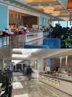 1. The Executive Lounge is located on the 38th floor, where you can enjoy special drinks and exquisite food while overlooking the magnificent scenery of Dalian Bay. It is a luxurious and elegant place for leisure time before and after meals, and also a perfect place to enjoy afternoon tea.