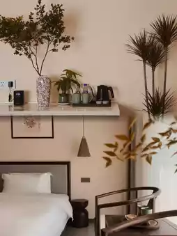 Stepping into Qingsong Yaju is like walking into an elegant ink painting. Wooden furniture, Chinese-style windows, and soft lighting, every detail reveals the subtlety and elegance of the East. The high-end mattress and private bathtub in the room allow you to enjoy the comfort and tranquility of home even during a busy trip.
