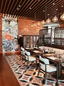 Saai Yue Heen, the signature Chinese restaurant on the 39th floor, specializes in modern Cantonese cuisine, serving handcrafted dim sum, traditional Chinese roasted meats, and Beijing jujube wood-roasted duck. The restaurant features an exhibition kitchen and display aquariums showcasing fresh local seafood.