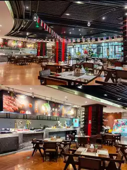 The buffet is unbelievably diverse, with an array of hot pot ingredients, freshly grilled meats and skewers that smell amazing, as well as Chinese delicacies like seafood platters, braised chicken with mushrooms, fried fish ribs, crispy shrimp, and stir-fried pork. There's also a wide selection of desserts and fruits to choose from.