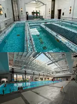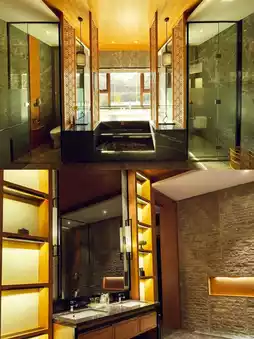 The hot spring area is divided into indoor and outdoor sections. Indoors, you'll find various functional pools like herbal baths and aromatherapy pools, plus a heated swimming pool, spa area, and a kids' water play zone. The outdoor hot springs let you experience nature's charm through the changing seasons, surrounded by lush greenery in a stunning environment.