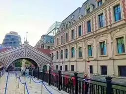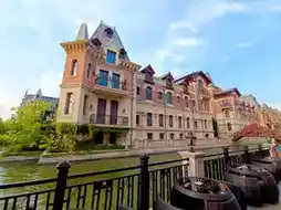 The Oriental Venice Water Town or "Venice of the East" is a tourist attraction in Dalian, China, which is built to imitate the atmosphere of Venice, Italy. It is located in the Donggang Business District of Dalian. It is a 4-kilometer man-made canal with European-style architecture. There are gondolas for sightseeing on both sides of the canal and the atmosphere of the simulated Venice water town. There are many beautiful bridges, many shops and restaurants. You can walk from morning to night. The atmosphere is different. There are many photo spots and you can take a boat to see the scenery. Or you can buy souvenirs and eat at a Russian restaurant in a romantic atmosphere. There are many shops to choose from as you like. There are many delicious foods at affordable prices. There are many other shops, ice cream shops, local dessert shops, and activity shops with fun games to play.
