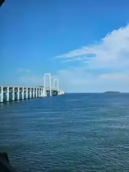 The sightseeing bus ticket costs 10 yuan. Departing from the upper deck of the cross-sea bridge and returning via the lower deck, on clear days you can clearly see landmarks like the Guanyin Statue, Castello del Sole Hotel, Xinghai Square, Shell Museum, and Sun Asia Ocean World, offering an incredibly cost-effective way to experience Dalian from the sea.