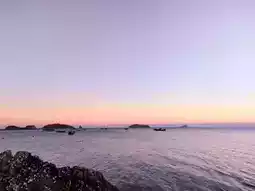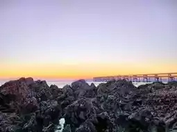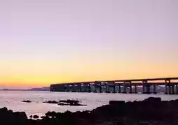 Even more surprising are the “hidden photo spots”: walk to the left side of the beach, where three small caves serve as natural frames. Shooting from inside the caves outward, the waves and distant fishing boats create a richly layered scene. During peak season, you might even encounter photographers lining up to capture the perfect shot. On the right side, the wooden boardwalk’s corner is an excellent sunset viewpoint. Photographers shooting from the opposite hillside can capture the sunset, Cross-Sea Bridge, and pedestrians on the boardwalk all in one frame, creating an immersive atmosphere. It’s worth mentioning that the beach here is paved with pebbles, making the seawater exceptionally clear. At low tide, you can pick seaweed and dig for small oysters in the rock crevices, offering plenty of fun for family interactions.