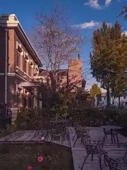 The leaves of the phoenix trees slowly fall like autumn letters, and the scattered colorful small houses beautifully decorate the late autumn.