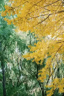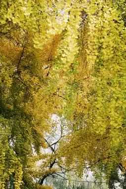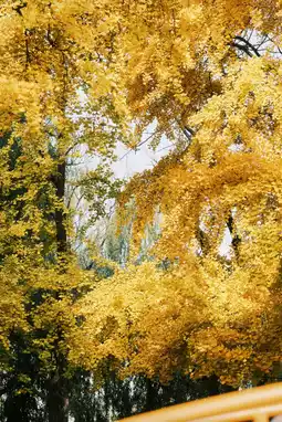 The golden ginkgo trees and the lake complement each other beautifully. Sunlight filters through the leaves, casting dappled shadows. Standing under the trees, every shot looks like an oil painting!
