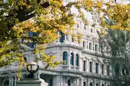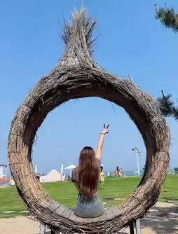 A portrait photography hotspot! Soft light plus a colorful fallen leaf background, backlighting makes hair strands glow.