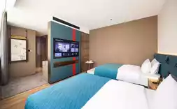 The mini bar is filled with drinks, the bathroom makeup mirror has built-in lighting, and when you open the drawer, even the towels are folded like clouds. Just downstairs is the shopping district, seamlessly connecting shopping, eating, and drinking!