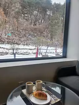 The cafe has a great atmosphere, is spacious, and cozy. I visited during a quiet time and had a comfortable stay. I stopped by while I was in Cheongdo, and the coffee and bread were both delicious. The cafe is spacious and comfortable, so it's great. The back garden and mountain view are really nice. The air is good, the building is pretty, and I had a great time in many ways.🩷
