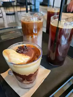 All the drinks are delicious!! The seats are spacious, so it seems like a good place to relax and chat.๐ฉทThe space is spacious, so it feels open, and there are large windows to enjoy the scenery in each season, so it feels like you're in nature. I think the outdoor seating would be great when it's warm!