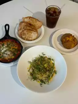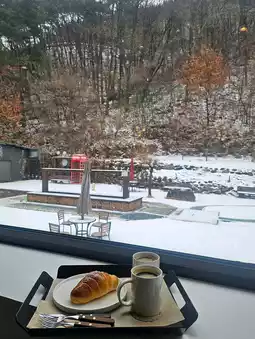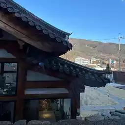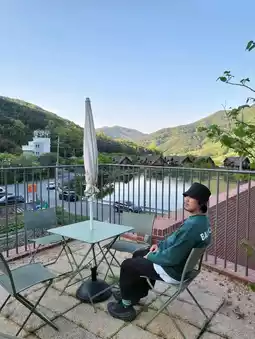It's a Hanok Cafe with a view💓 The store is really really big, so it's great to bring kids👍 The coffee tastes okay, and there are a lot of different types of bread, and they warm it up so you can eat it warm! It's the best to take kids and stay comfortably for a long time when you see a good view!! 👍 It seems prettier when you come when the scenery is green💚🖤