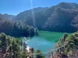 Arrive at Daming Lake, which is the intersection of the upper and lower cableways, ski resorts, the Great Wall of Steel, and other directions. If you are not physically fit, you can take the cable car down the mountain. If you are physically fit, it is recommended to walk the Great Wall of Steel, as the scenery along the way is very photogenic.