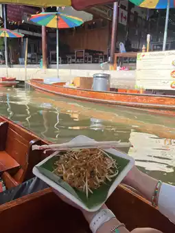 I rode a boat with the taxi tour driver, and I saw a cute lizard🦎 and ate Pad Thai😋