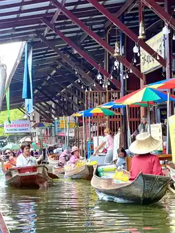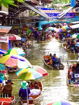 At Damnoen Saduak Floating Market, one of Thailand's most famous tourist destinations, you can immerse yourself in a unique experience that preserves the traditional way of life. Local vendors on colorful boats sell fruits and souvenirs, making shopping on the water feel like stepping into a Thai folk tale. The lively morning market is perfect for photography and offers a close-up encounter with Thai culture.
