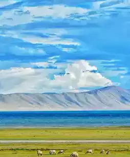 Lake Manasarovar, in the hearts of believers, is the purest and most beautiful place in the world, a paradise on earth. The lake water here is crystal clear, shimmering with light, and the surrounding scenery is tranquil and serene, instantly purifying and calming the soul.