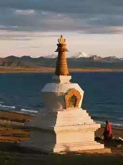 🎬Use prayer flags and mani piles as the foreground, snow mountains and lake as the midground, instantly creating layered, cinematic shots!