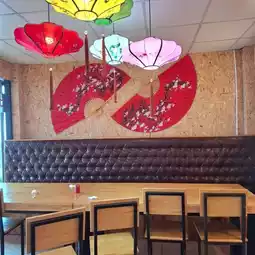 The atmosphere inside the restaurant is decorated in Chinese style, bright red, with decorative lamps to add beauty. There are seats to enjoy the view outside. The morning atmosphere is full of fog. Anyone who wants to experience the atmosphere and eat a meal amidst the fog must go during the rainy season or this winter.