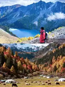 ✔️ One of China's most beautiful autumn landscapes: a trinity of alpine colorful forests + snow mountain lakes + hot spring streams