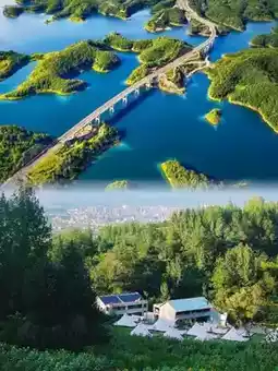 🔹 **Danjiangkou Thousand Island Gallery**: Aerial photography of scattered islands, a water-sky blend like an oil painting