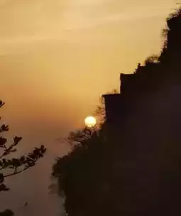 Riding the cable car upward, clouds envelop then part to unveil the **Golden Summit** ablaze in 4 p.m. sunlight. The golden hall of **Taihe Palace** glows like a celestial palace. At dusk, the sun drowns in clouds, setting the sky aflame with molten gold—almost revealing immortals riding the wind, where Taoist harmony unfolds in the dying light.